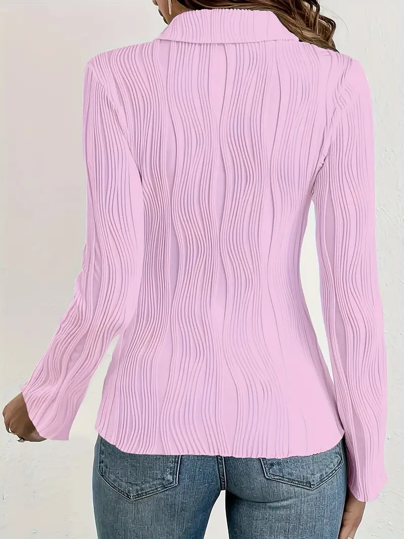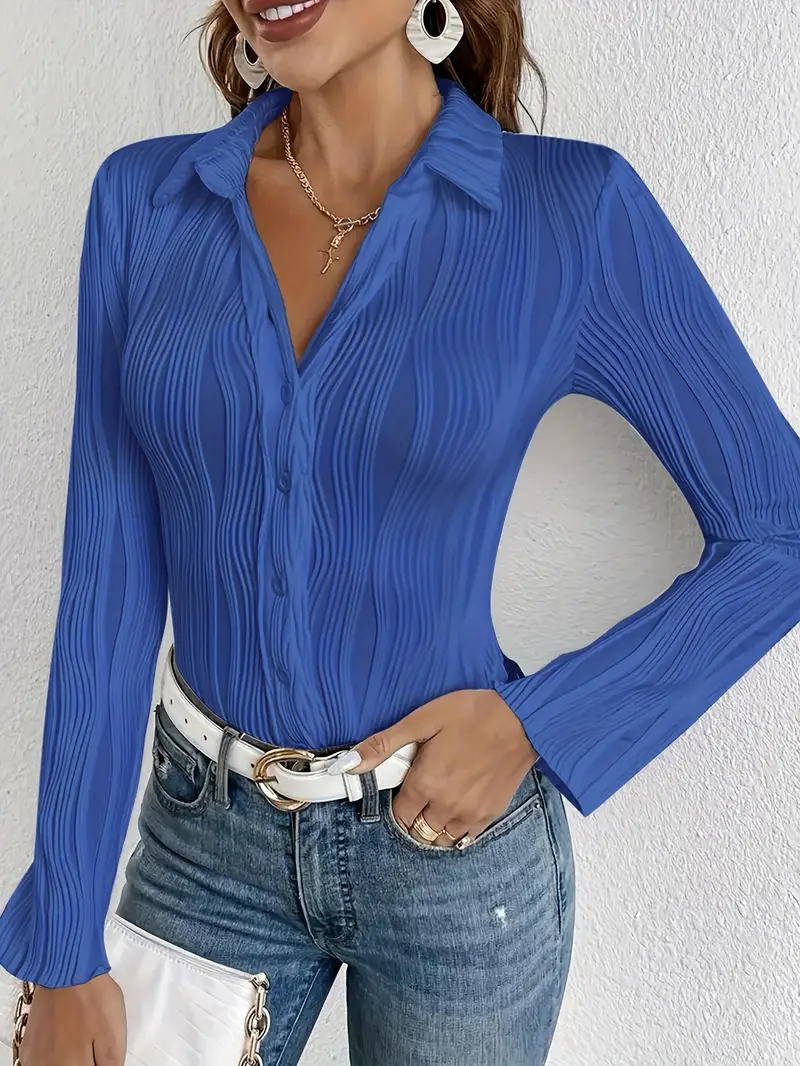 Designed for the modern woman who values both style and comfort. Crafted from high-quality cotton with slight stretch for ease of movement, this blouse features a slim fit that beautifully contours to your body, enhancing your silhouette. The long sleeves and elegant pleating add a touch of sophistication, making it an ideal choice for office wear or formal events.