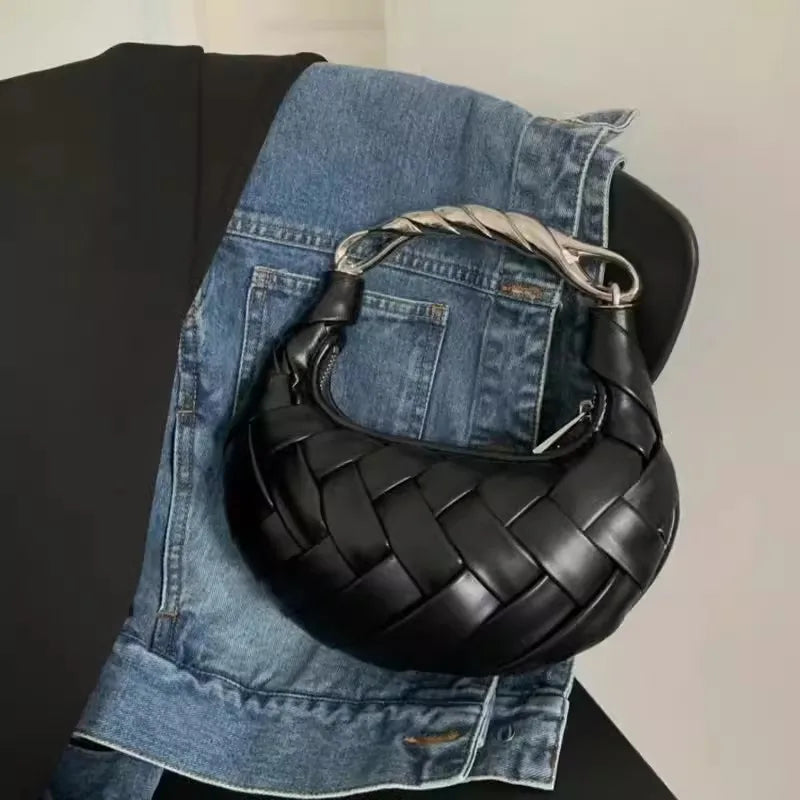 Elevate your style with our luxurious weave shoulder handbag, designed for the modern woman. This chic accessory features an intricate weave pattern and a stunning gold handle, combining elegance with practicality. Perfect for any occasion, it offers ample space for your essentials while making a bold fashion statement.