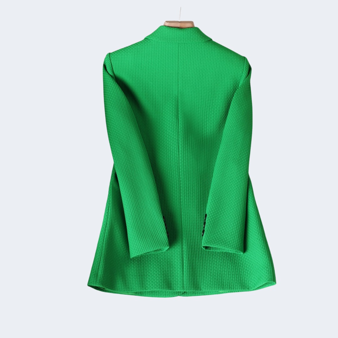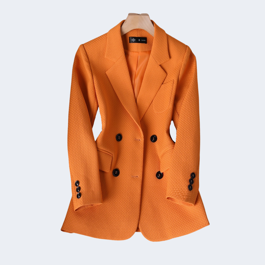 Indulge in the captivating charm of the Sophia Signature Blazer, a masterpiece that transforms the world into your runway, radiating sophistication, style, and unadulterated elegance. Meticulously curated with a modern edge, this blazer reinvents the timeless wardrobe staple, impeccably tailored for a sleek, confidence-infused silhouette.
