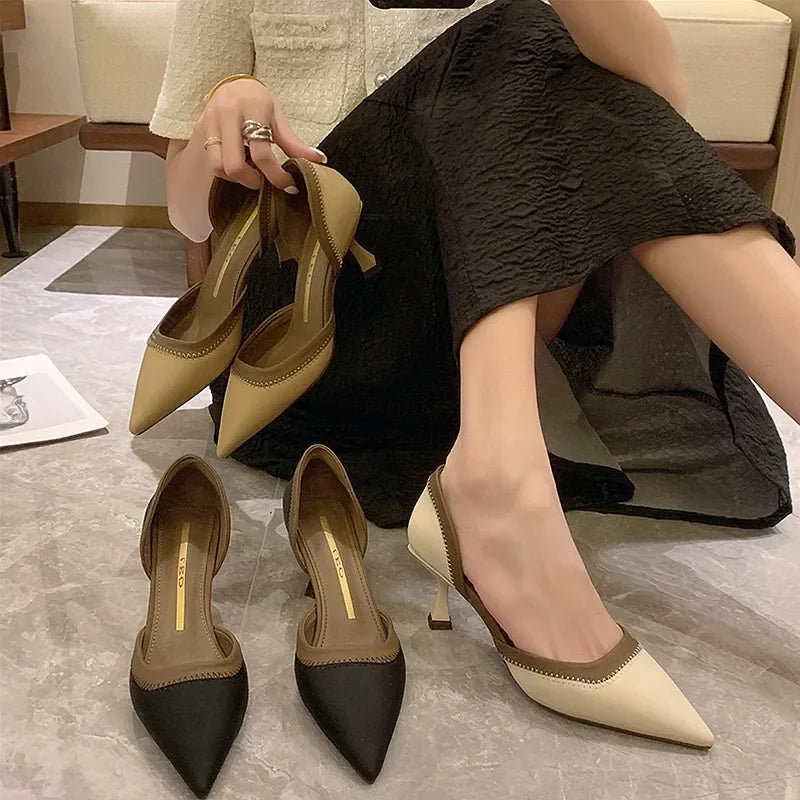 Crafted with a keen eye for elegance, these Pointy French High Heels for Women feature a sleek, slim heel and a sharp silhouette that epitomize sophistication. The juxtaposition of luxurious materials ensures durability and comfort, making them perfect for a variety of occasions from office wear to evening events.