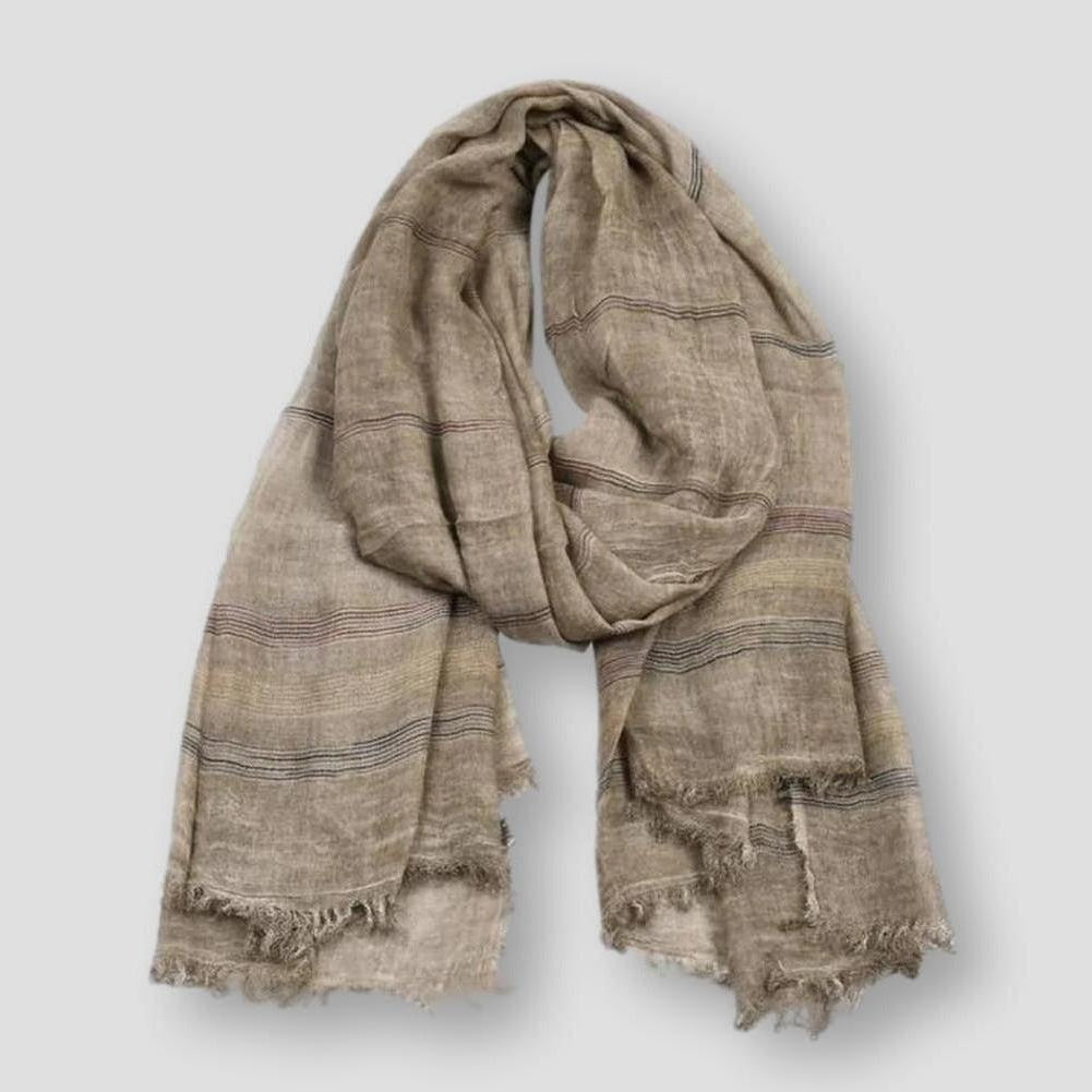 Soft linen blend furthers the casual-cool comfort of this stylish scarf. Complete with a subtle striped pattern and tassels, this lightweight scarf is the perfect accessory to refresh any outfit year-round.