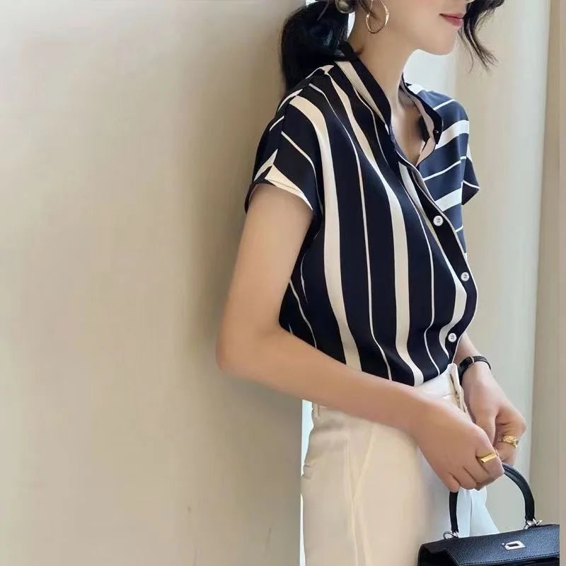 Perfect for the fashion-forward individual, this piece features a bold black and white palette that makes it versatile enough for both office wear and casual outings. The stand collar adds a touch of elegance, making it a standout choice for anyone looking to elevate their wardrobe with a blend of modern style and timeless sophistication. Ideal for pairing with both trousers and skirts, it's an essential item for a seamless transition from day to evening looks.