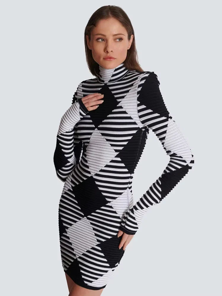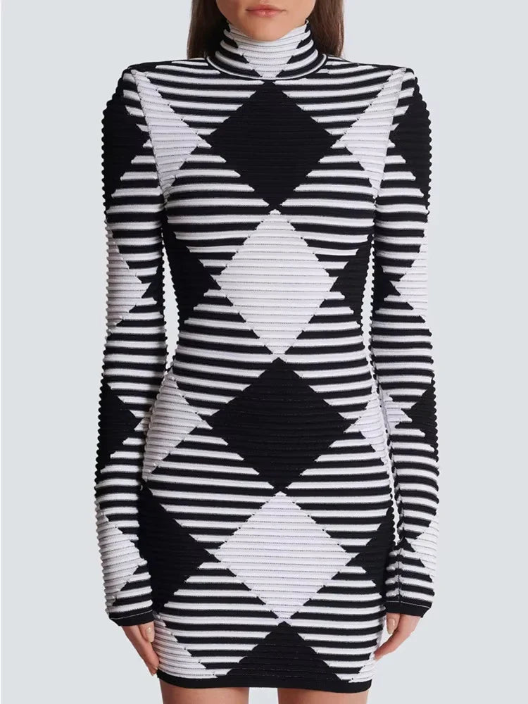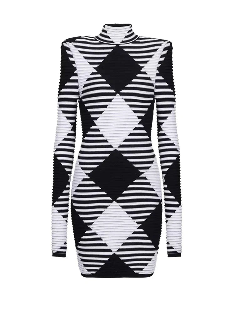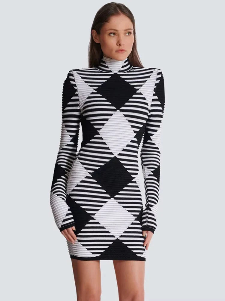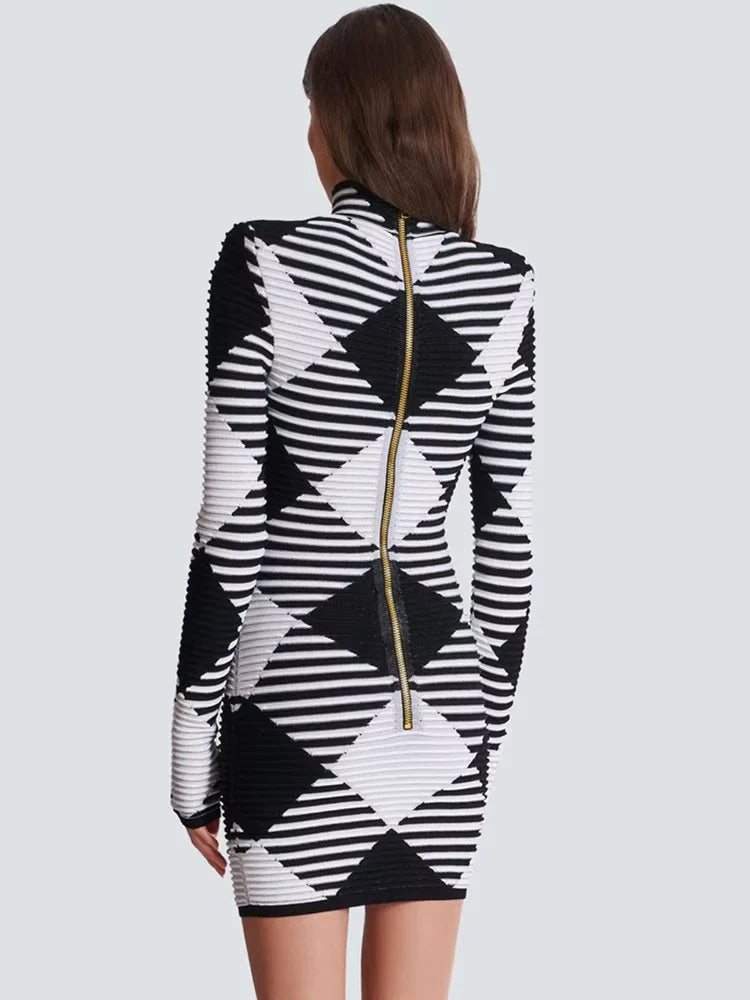 Turn heads with this elegant long-sleeve mini dress, designed to effortlessly blend sophistication and allure. The striking geometric pattern and tailored fit make it perfect for any occasion, from upscale gatherings to stylish nights out. Crafted with premium fabric, this dress ensures comfort while enhancing your silhouette for a polished, confident look.